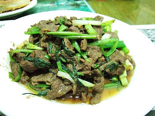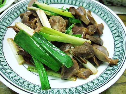 先把蔥(or蒜苗)爆香後放進切好的鴨胗