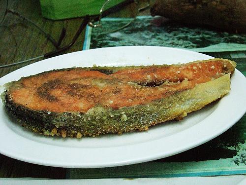 我的做法:油熱後先舖一層薑片後再煎魚~這樣也不大會沾鍋~不過就沒照片了