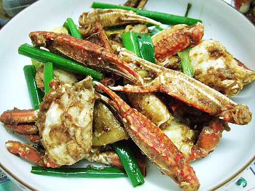 2.把螃蟹下鍋拌炒.加一點水蓋上鍋蓋悶熟