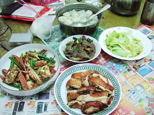 婆婆炒了鴨胗跟白菜心還有冬瓜湯
