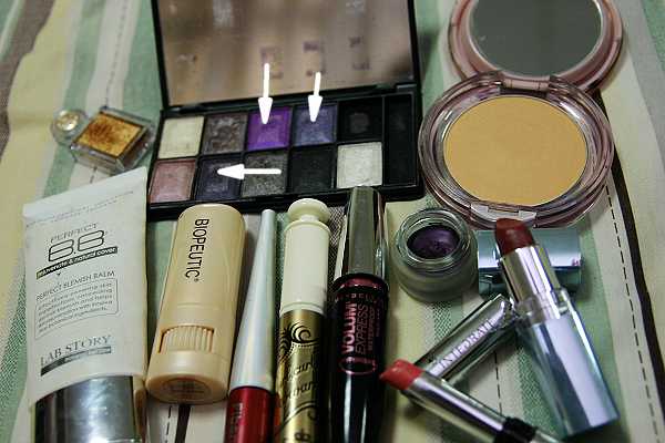 眼妝的部份是不知道韓國牌子的眼影盤跟MJ的金色眼影,今天畫的是金色配紫色