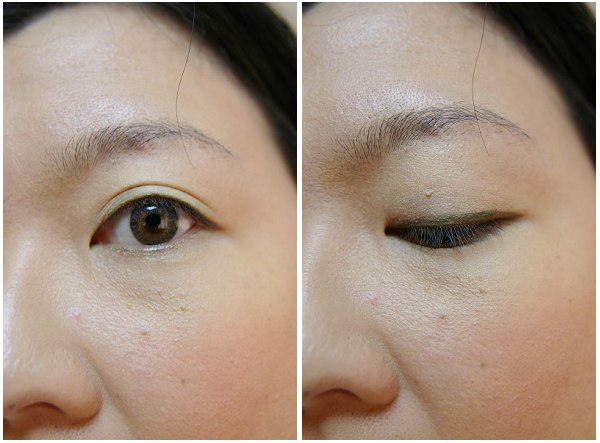 然後再用SANA 兩刃型眼線筆的墨水筆管那邊細細的畫上一條細眼線