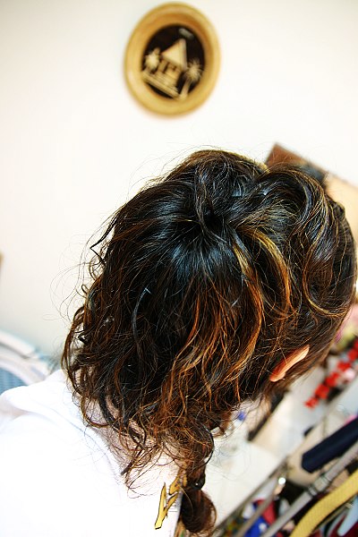 抓了點髮蠟,然後用黑色小夾子把公主頭的部份夾到把橡皮筋遮住就OK了