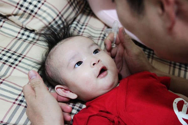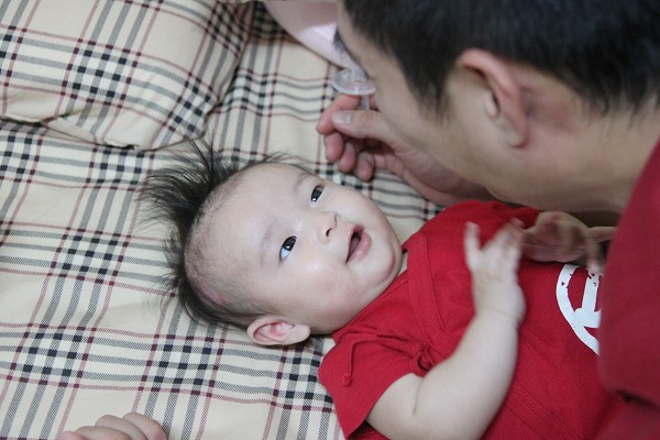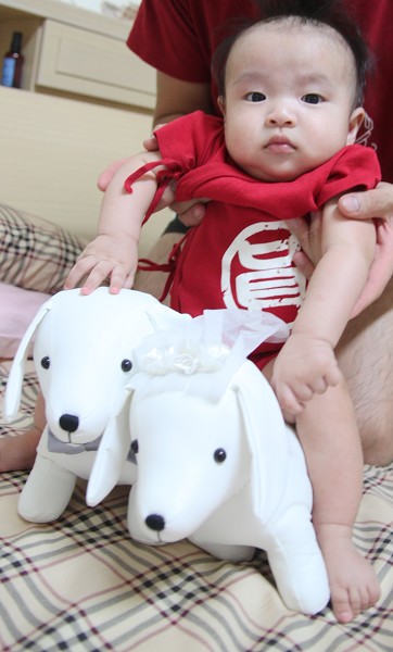 少爺趴著因為翻身翻不過在生氣大叫中XDD
