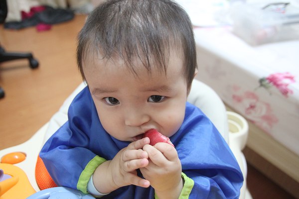 少爺一拿到開始啃後就馬上呈現沉默的狀態~~