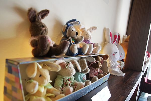 牆邊滿滿的兔子玩偶