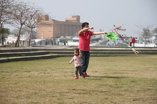 跟把拔一起玩風箏的蘋果妹