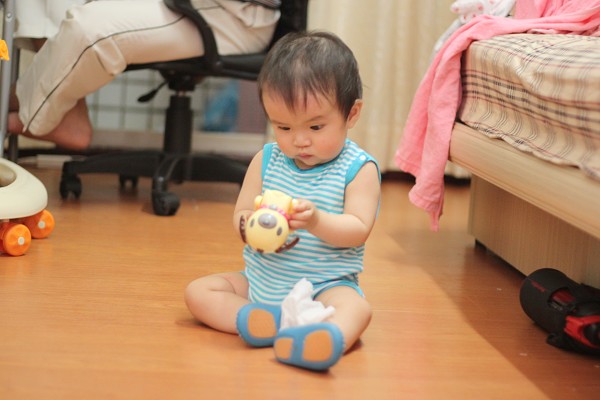 昨天穿長袖包屁衣露大腿還流汗的孩子