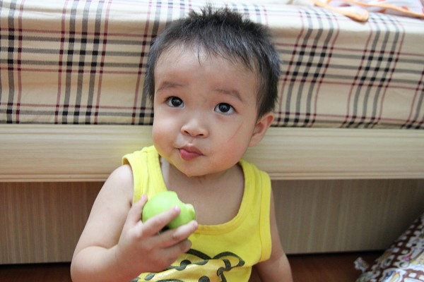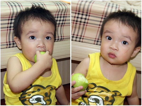 行為:會分辨耳朵、頭、抖宅、小鳥、也可以分辨書、車、鞋子、衣服、也開始有自己想拿湯匙的行為