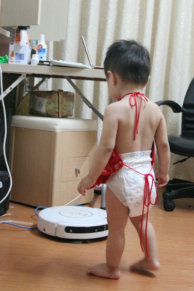 現在已經是個天天跟在媽媽旁邊奔跑的孩子