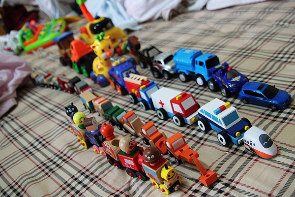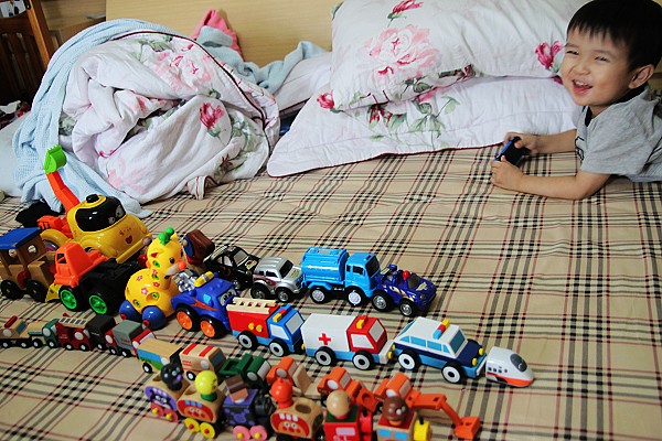 今年的生日禮物就是前面三排的木頭小車車