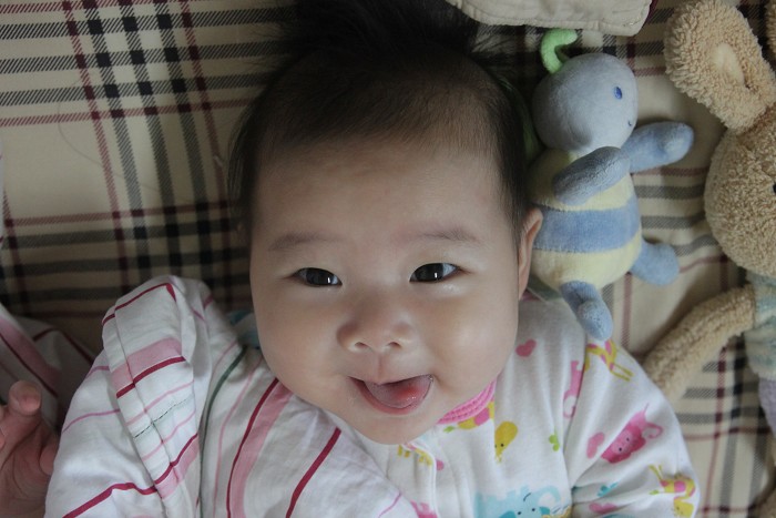 今天起床肉肉妞就是用這樣的笑容融化了我