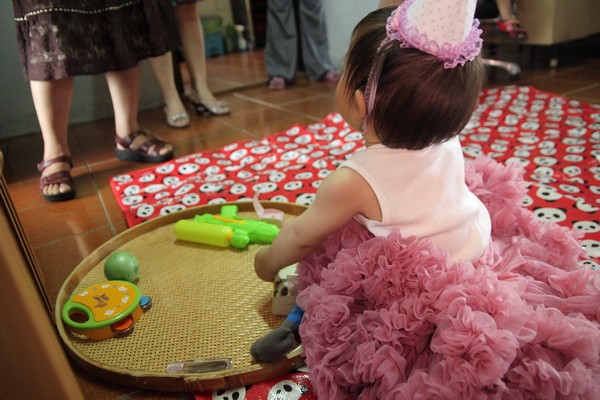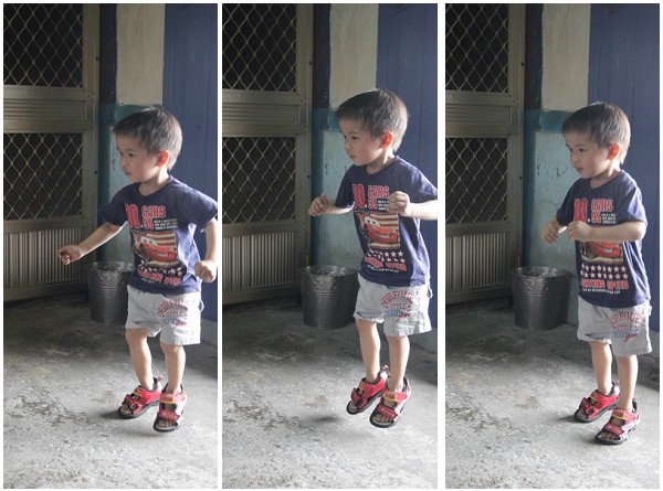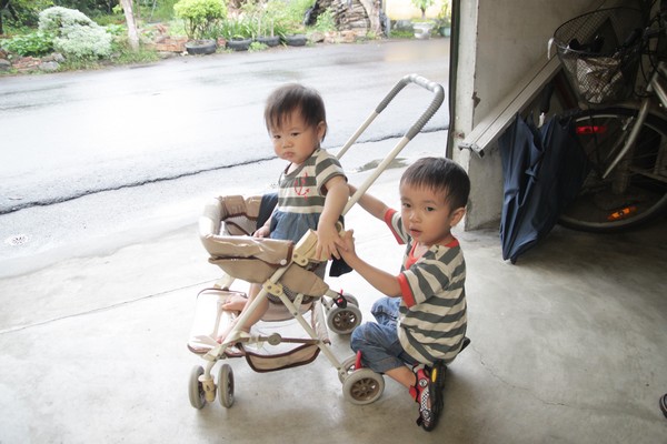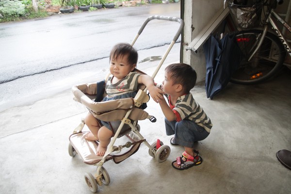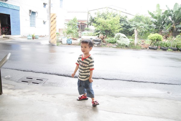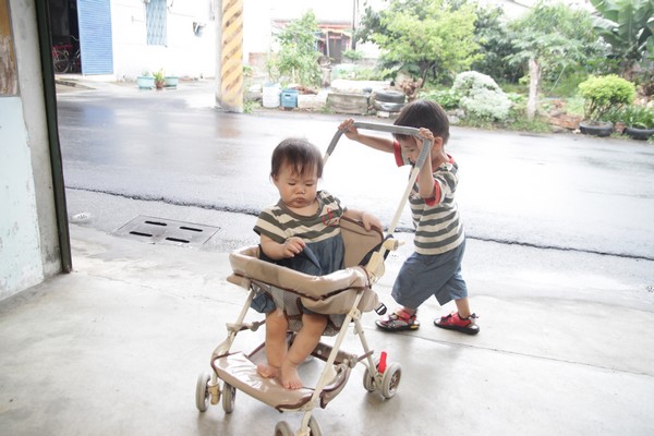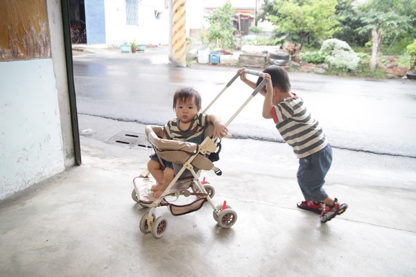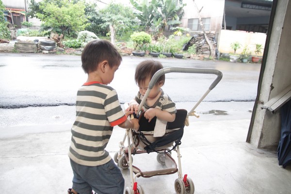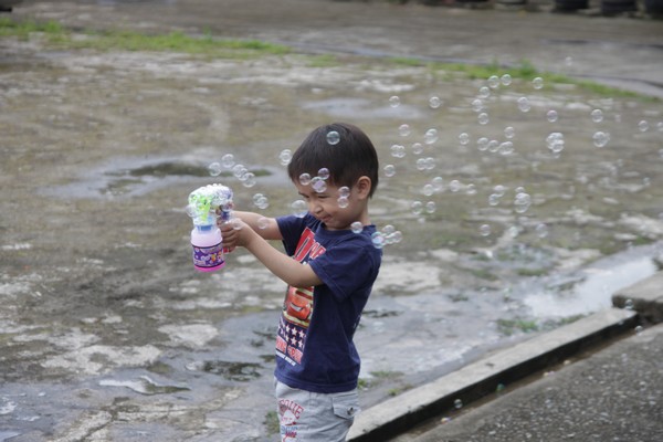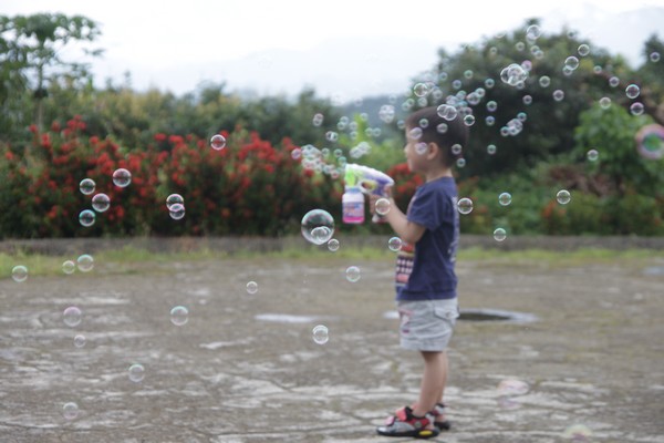 三合院剛好讓哥哥有空間可以玩他的泡泡槍