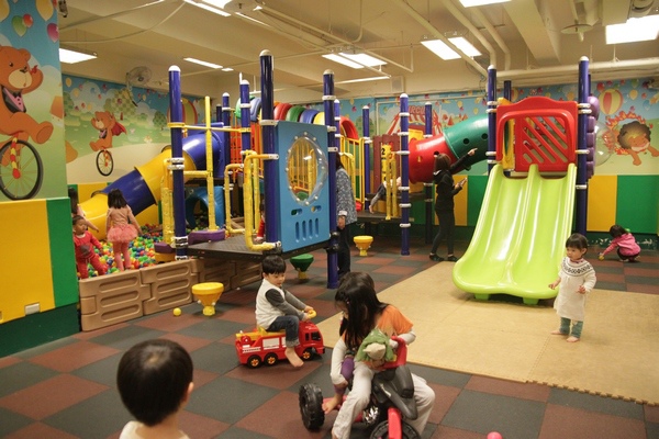 這空間就是這樣有球池、溜滑梯跟很多車車讓大家滑