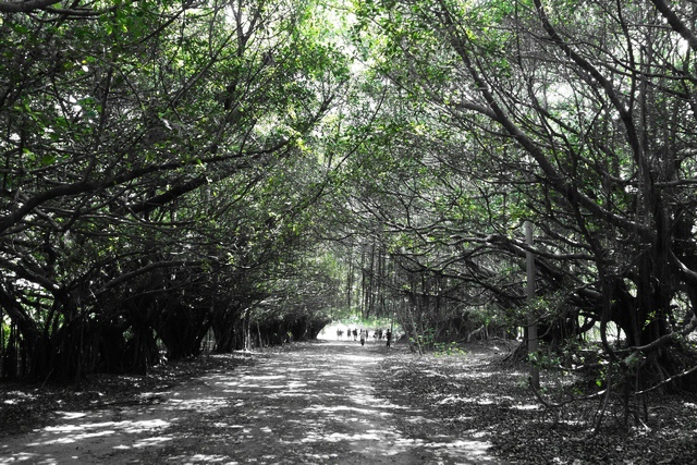 榕樹綠隧當年是因防空上的需求而種,高聳入天的綠蔭掩護通訊訓練中心內的器材、卡車、坦克車及自走炮等