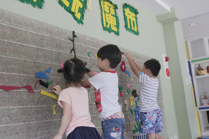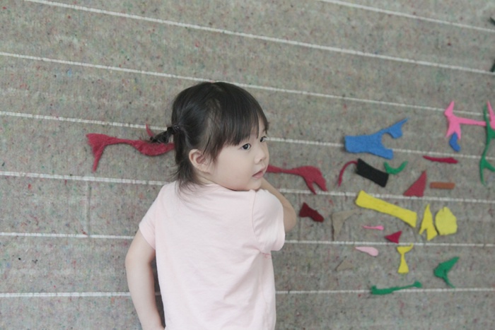 旁邊還有這面可以玩不織布的牆面