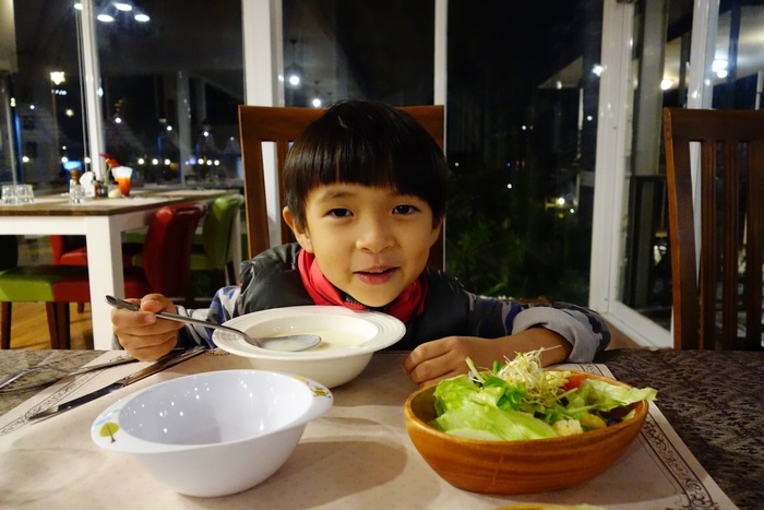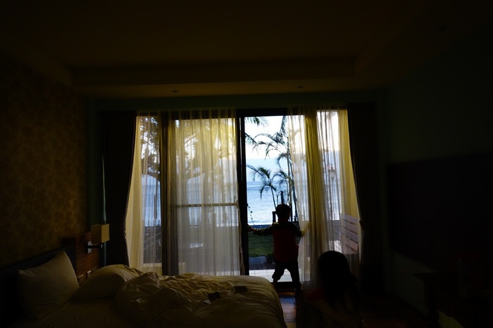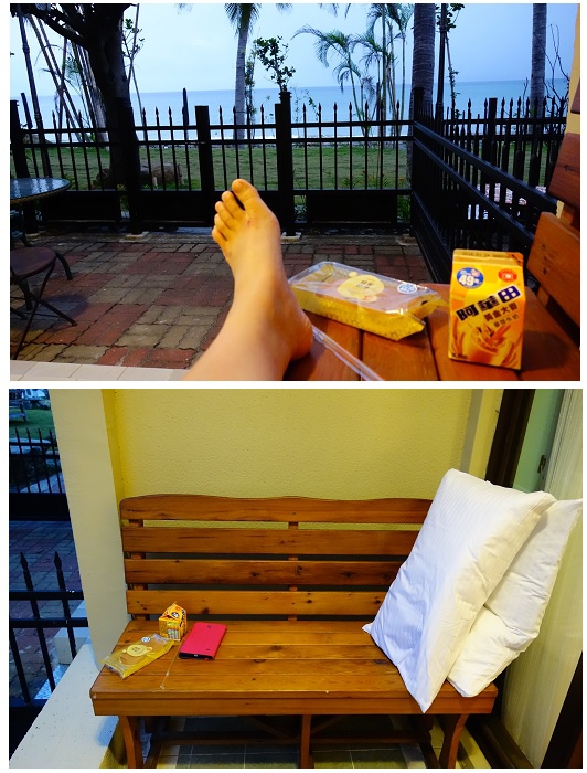 拿了早餐去陽台聽海浪的聲音吃早餐