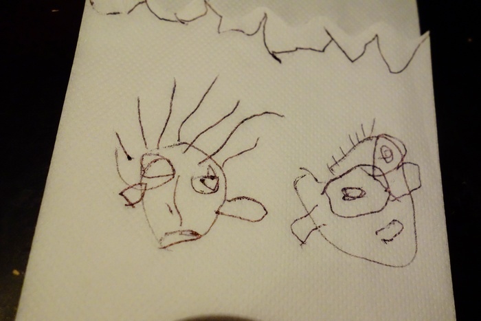 左邊是長髮的媽媽,右邊是大眼的爸爸