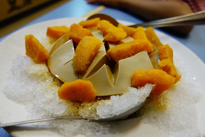 我跟長官各點了杏仁豆腐冰跟咖啡豆腐冰