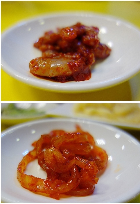 因為老闆剛從韓國回來~新學了這道辣醬醃生章魚跟花枝