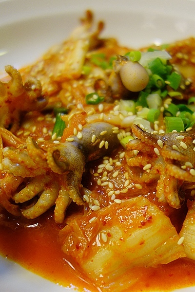 我查了一下~在韓國是直接抓活的章魚直接沾上嗆辣醬後來吃