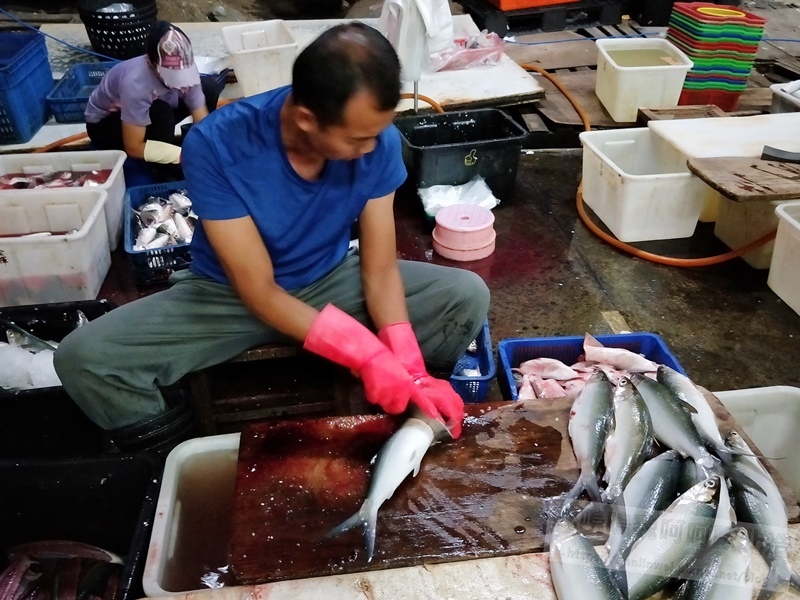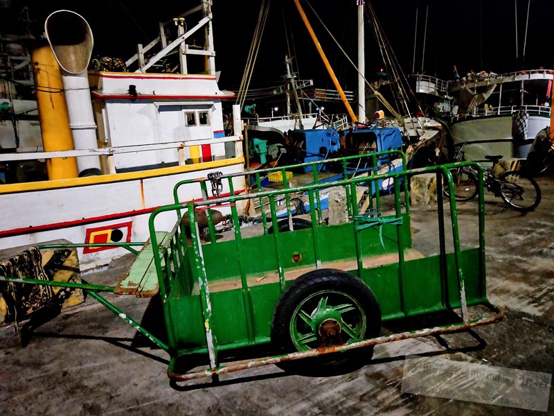 所以都是用嗚嗚背後的吊車從漁船吊出來