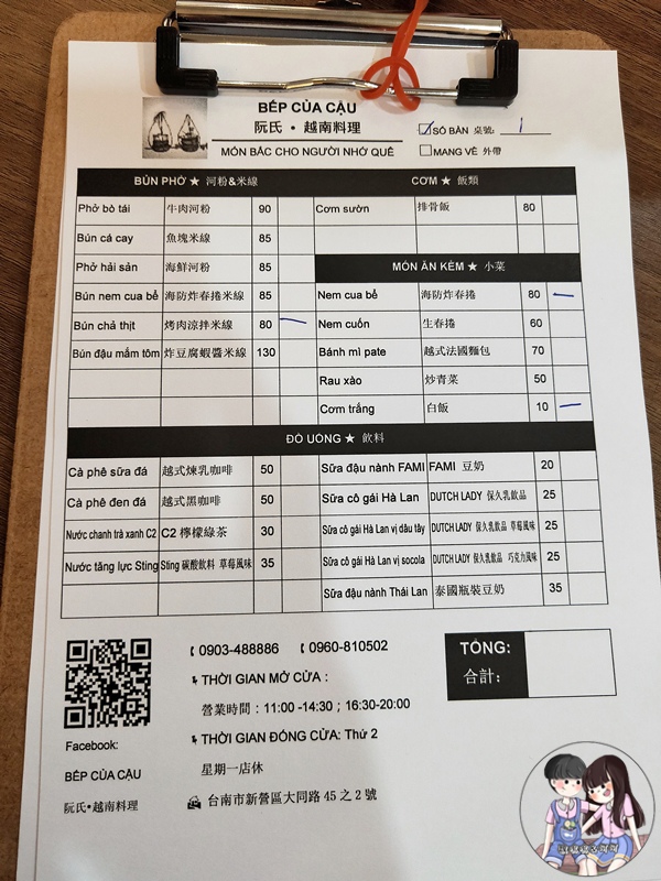 新營最近在大同路開了一家BẾP CỦA CẬU 阮氏•越南料理
