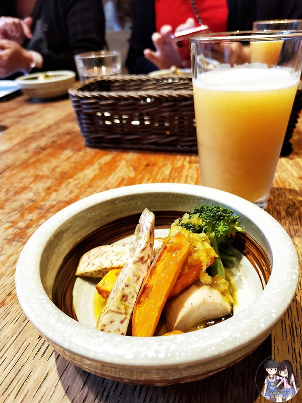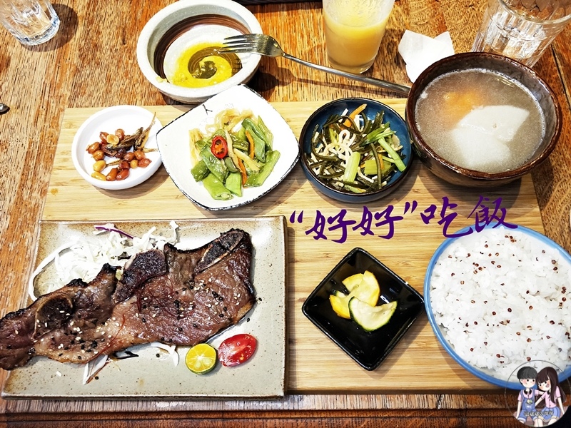 每份套餐都有附上時蔬輕紗拉及活力果汁