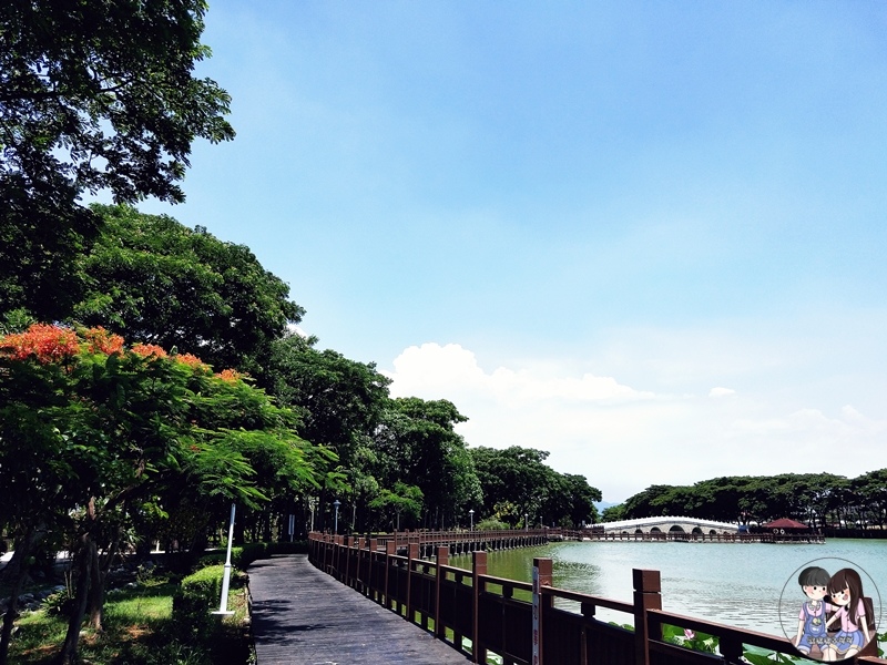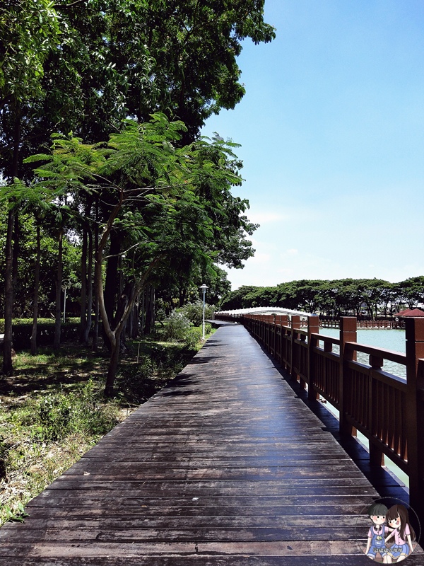 天鵝湖東湖以生態為主,環湖棧道總長約 2公里,