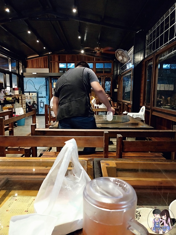 吃飯過程看到這裡的工作人員在整理隔壁桌子