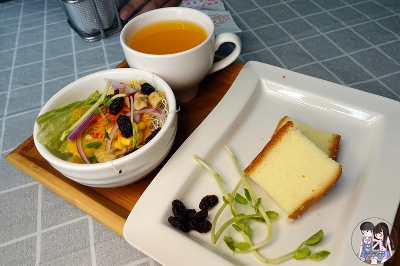 B餐則是提供沙拉、蛋糕跟柳橙汁