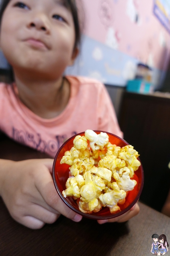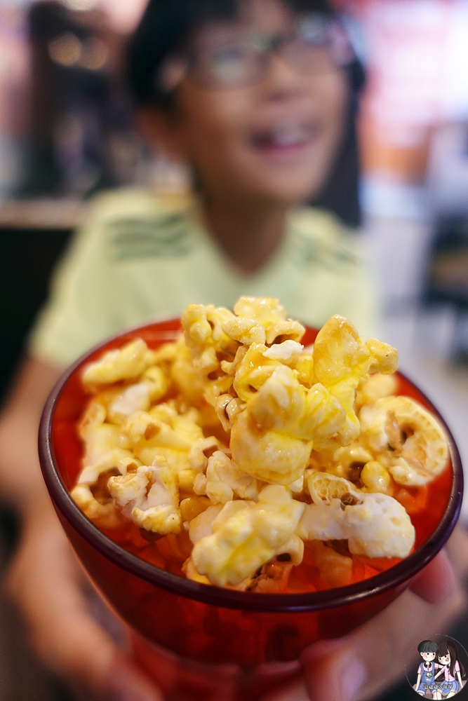 體貼的老闆就送上剛爆好的甜甜爆米花