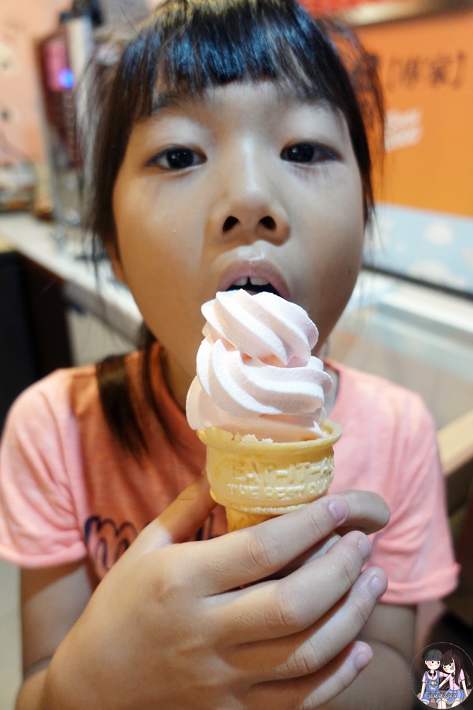 兩小看到霜淇淋馬上指定說要草莓口味的!