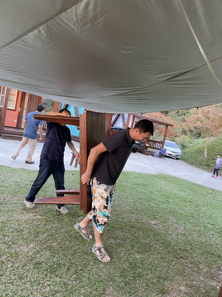 還要忙著搬小木屋前的桌椅準備晚上吃飯用