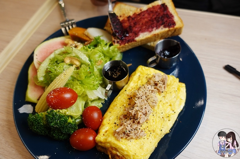 我跟長官分食了這份莓果鮮蔬歐姆蛋全麥土司