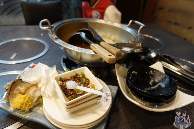 這裡的鴛鴦鍋只有鍋底沒有菜盤
