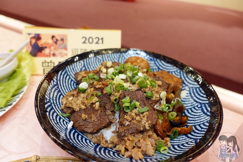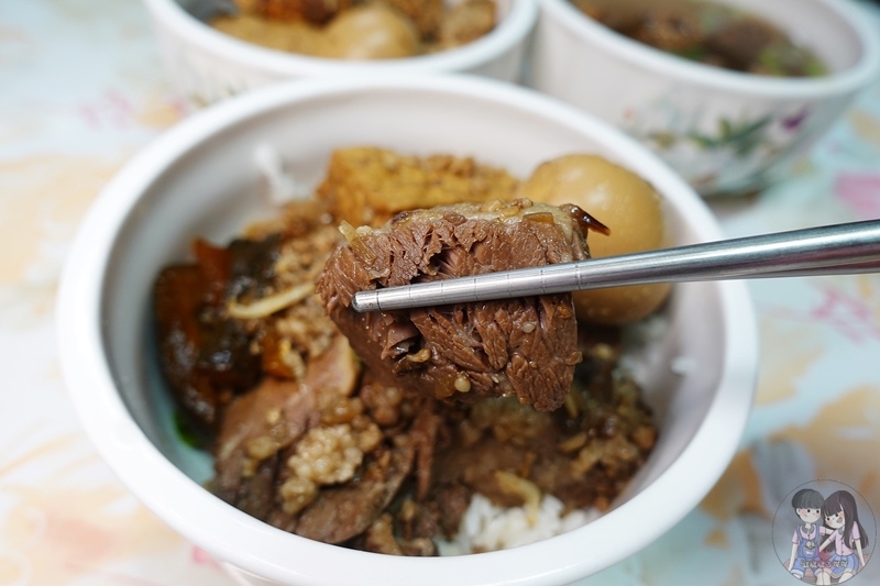 鋪滿肉燥飯的滷牛腩切片