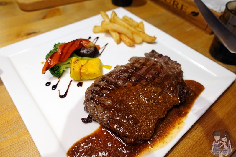 魏小姐點了七分熟的8盎司碳烤沙朗牛排
