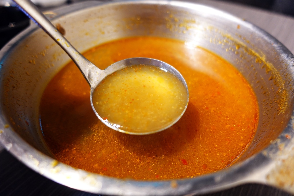 他們家的麻辣鴨血湯底喝起來跟麻辣鍋不大一樣