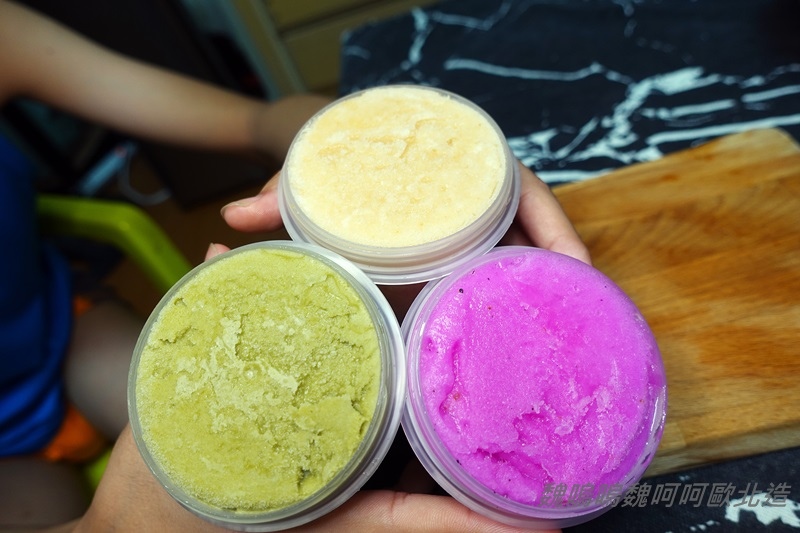 我們三個分別吃了花生、抹茶跟火龍果檸檬口味