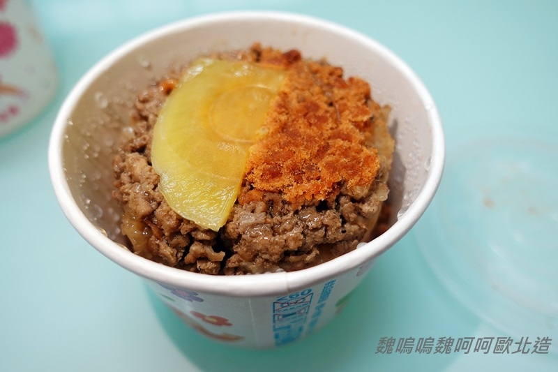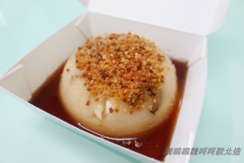 上面鋪著一層滿滿肉燥的筒仔米糕