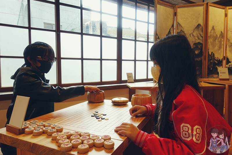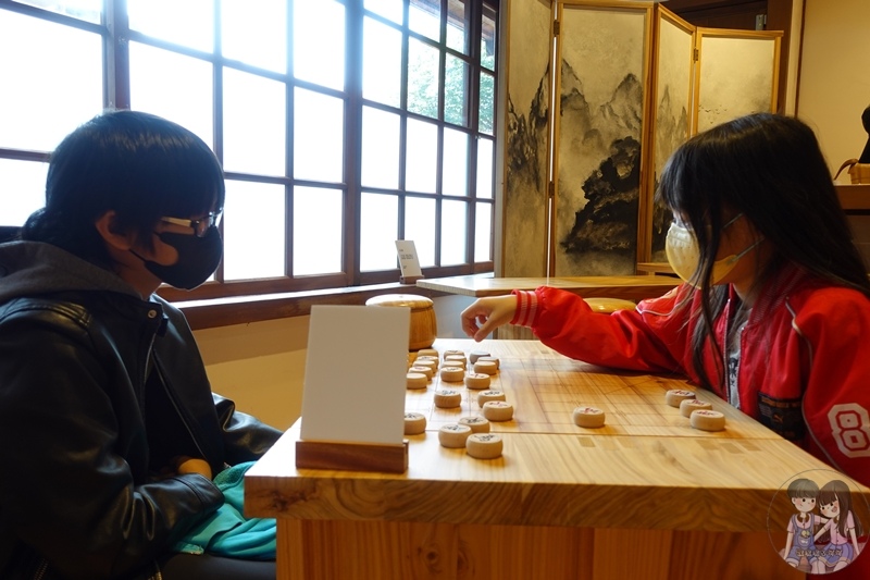 旁邊的阿北阿姨笑著看倆小下著象棋