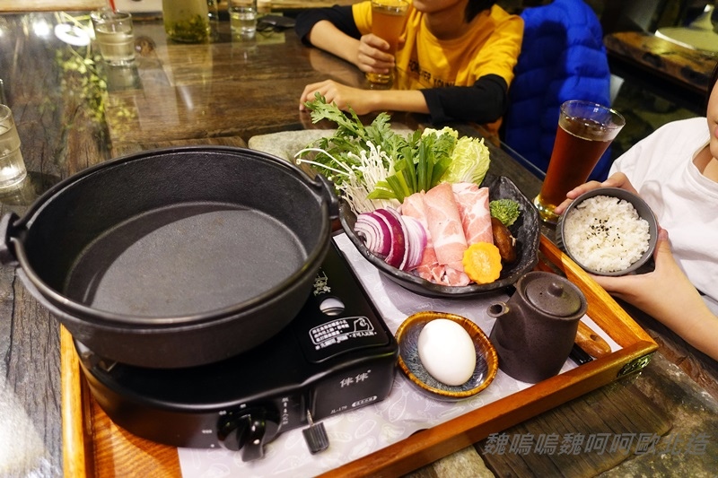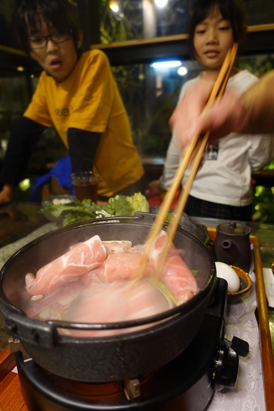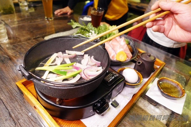 綠舍庭園餐廳的壽喜燒會先把洋蔥跟蔥段先爆香