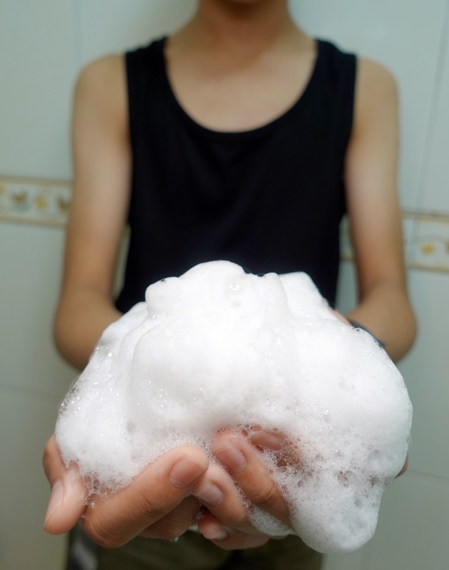 起泡劑中,還添加了常常用在洗面乳的胺基酸洗劑,