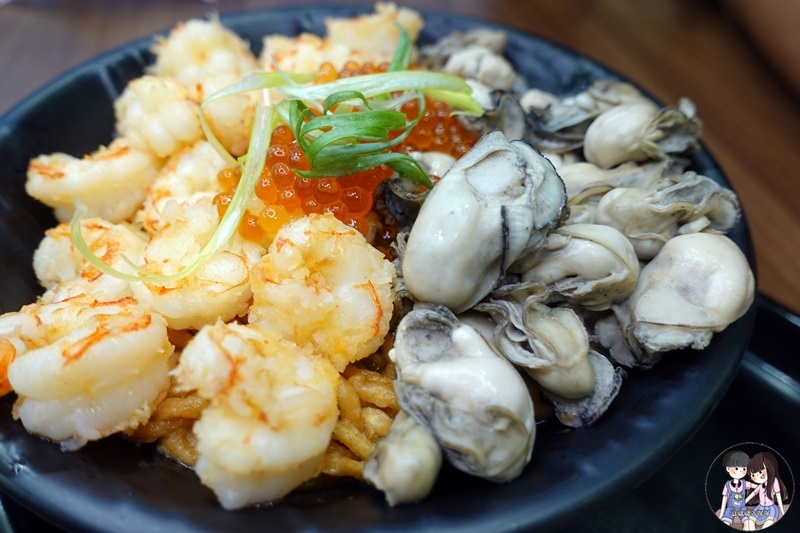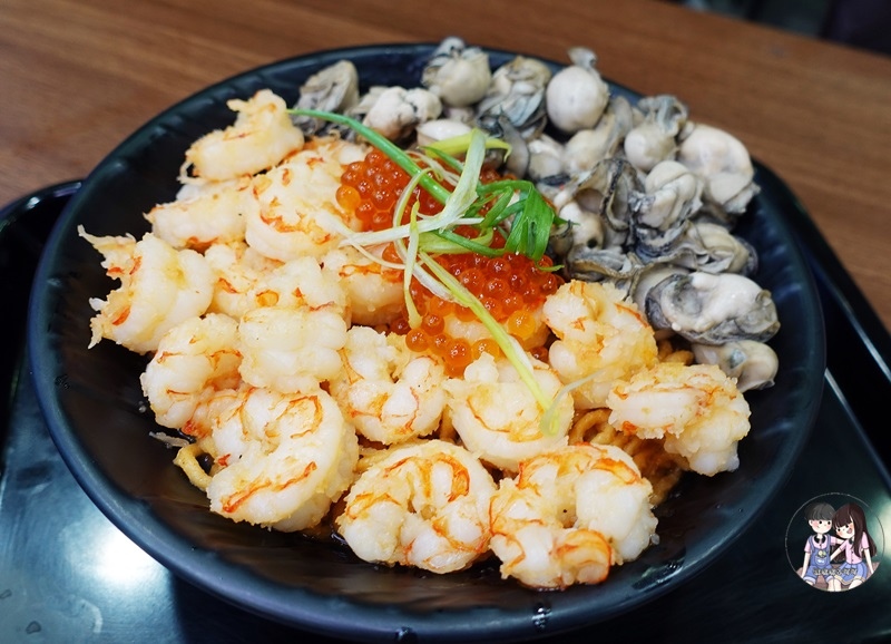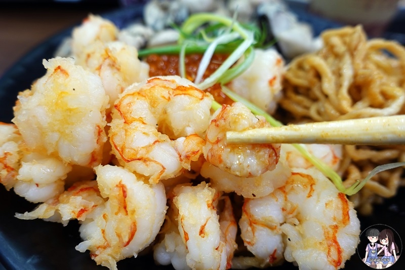 裡面有蚵仔、鮭魚卵跟天使蝦