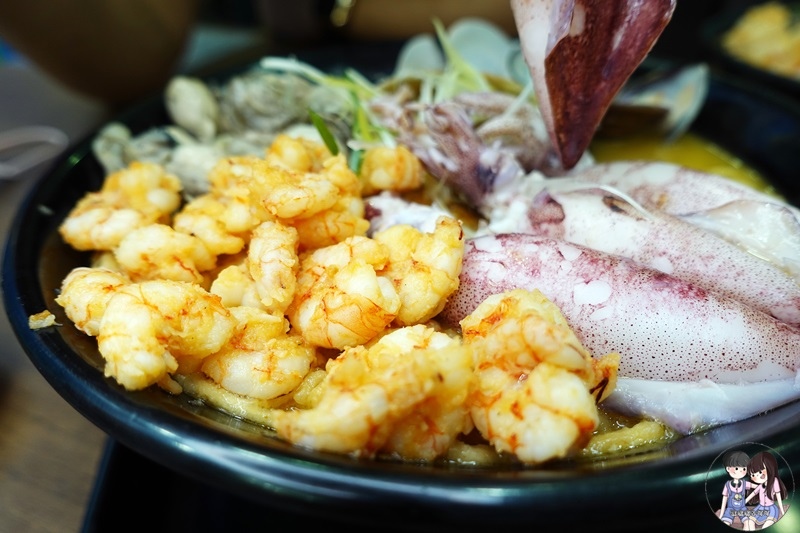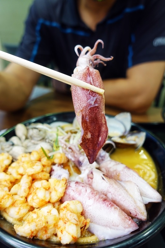 裡面有蛤蜊、蚵仔、火燒蝦跟小卷四種海鮮
