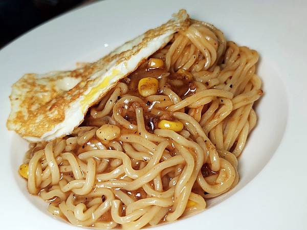 我夾了一切跟黑胡椒鐵板麵混著吃